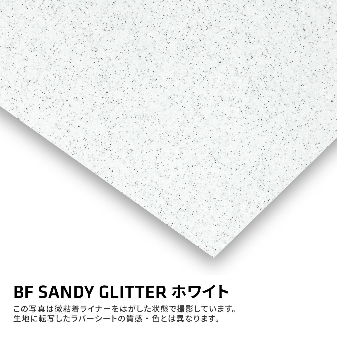 BF SANDY GLITTER(ビーエフ サンディ グリッター)は、隠蔽性のあるベースフィルムに微細グリッター材をコーティングしたポリウレタンフィルム。テクスチャー感があり、より華やかな表現が可能で、独創的なファッションアイテムに最適です。耐洗濯性にすぐれ、長期間グリッター効果が持続します。