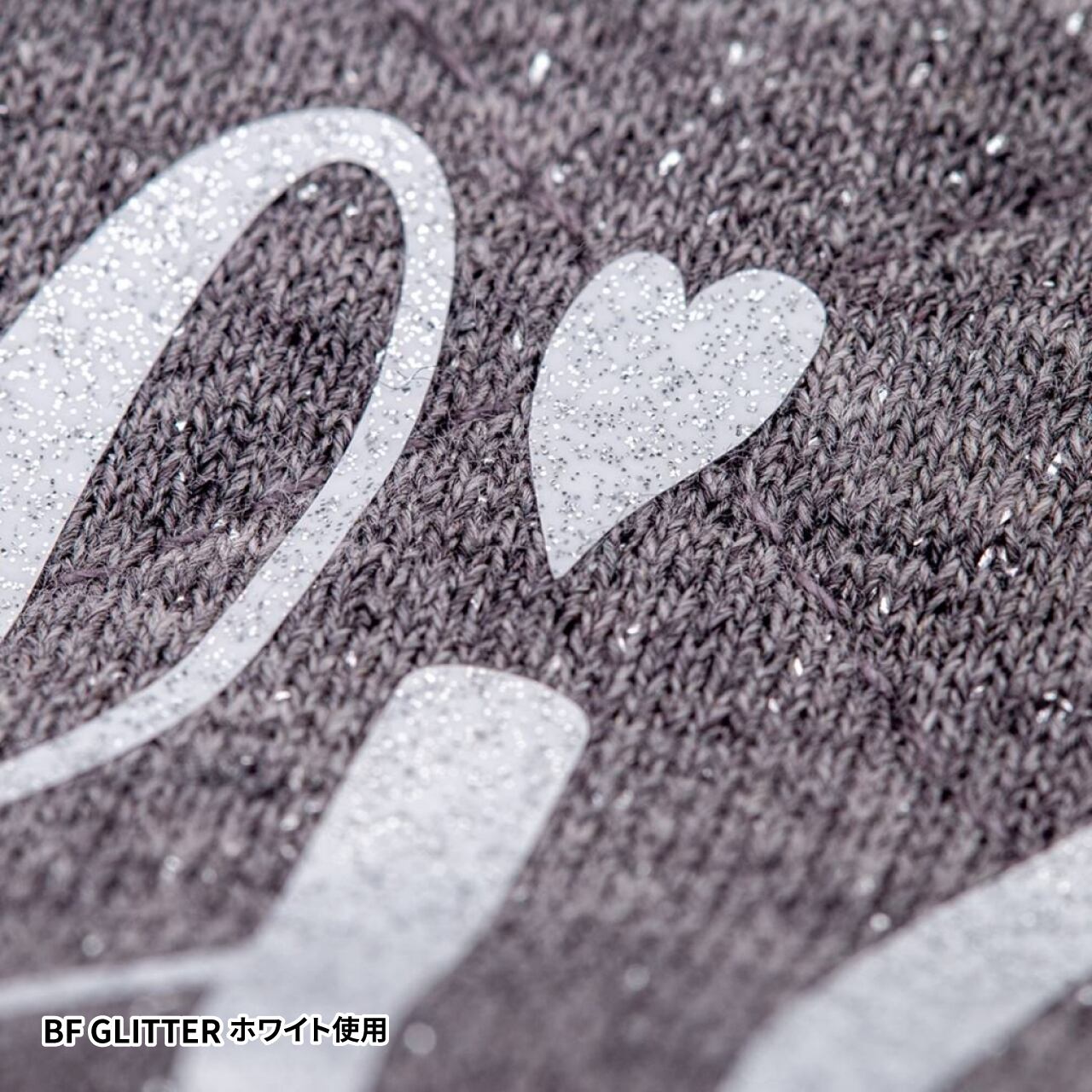 BF GLITTER(ビーエフ グリッター)は、鮮やかなグリッタールックのポリウレタンフィルム。製造時にグリッター材を内包することで、きらきらと輝くグリッター効果とスムースな表面を両立。