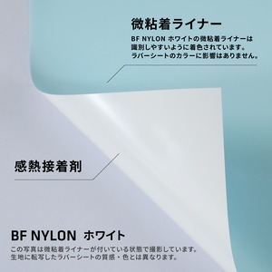 BF NYLON(ビーエフ ナイロン)は、特別に調整された感熱性粘着剤を使用し、ナイロン生地への貼り付けに最適な熱圧着ポリウレタンフィルムです。